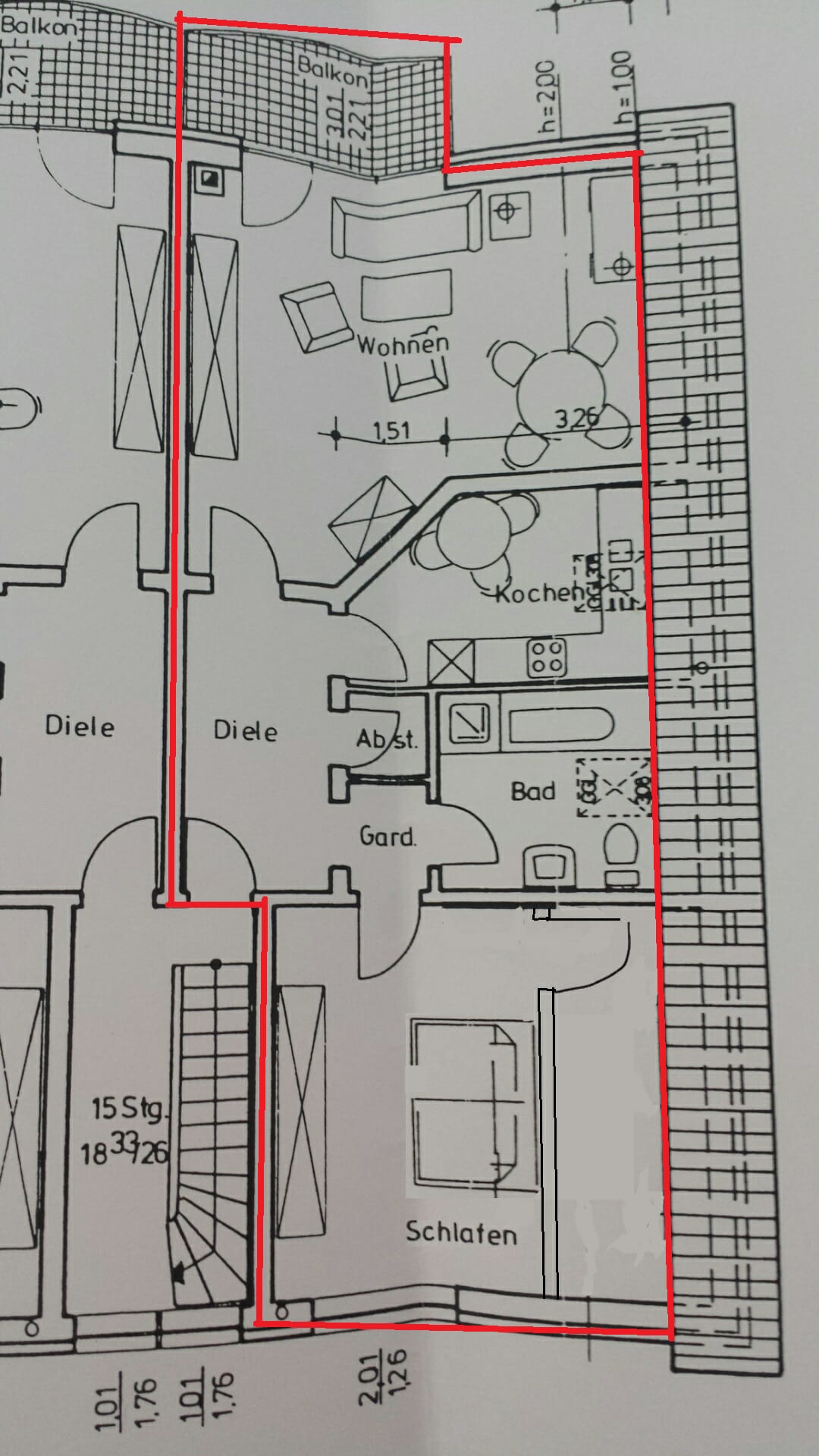 Zur Wohnung gehört außerdem ein Außenstellplatz, der für 10.000,00 € zusätzlich erworben werden muss, sowie ein Kellerraum.