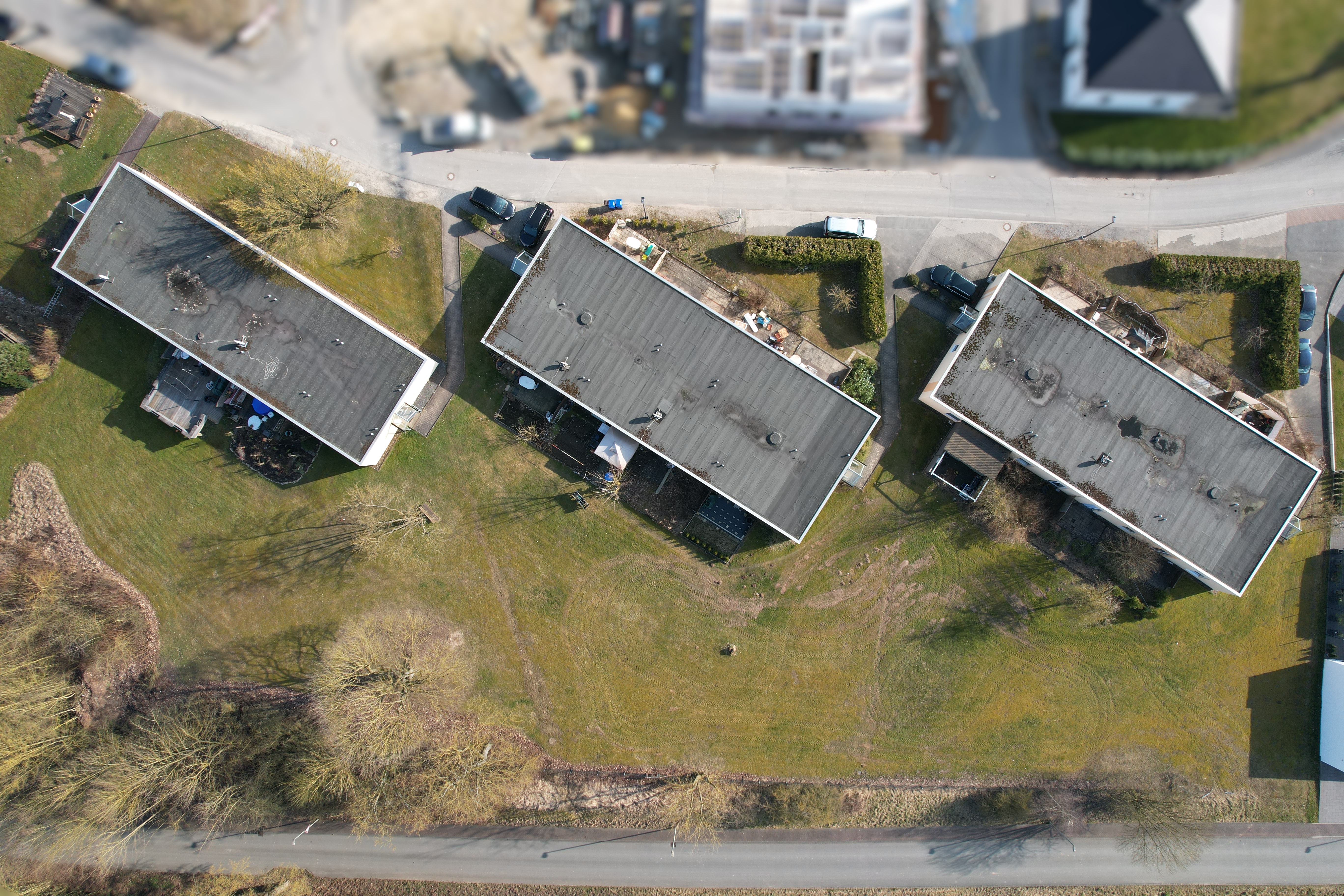 Zum Verkauf stehen drei gepflegte Mehrfamilienhäuser, die auf einem großzügigen Grundstück von 3.480 m² erbaut wurden.