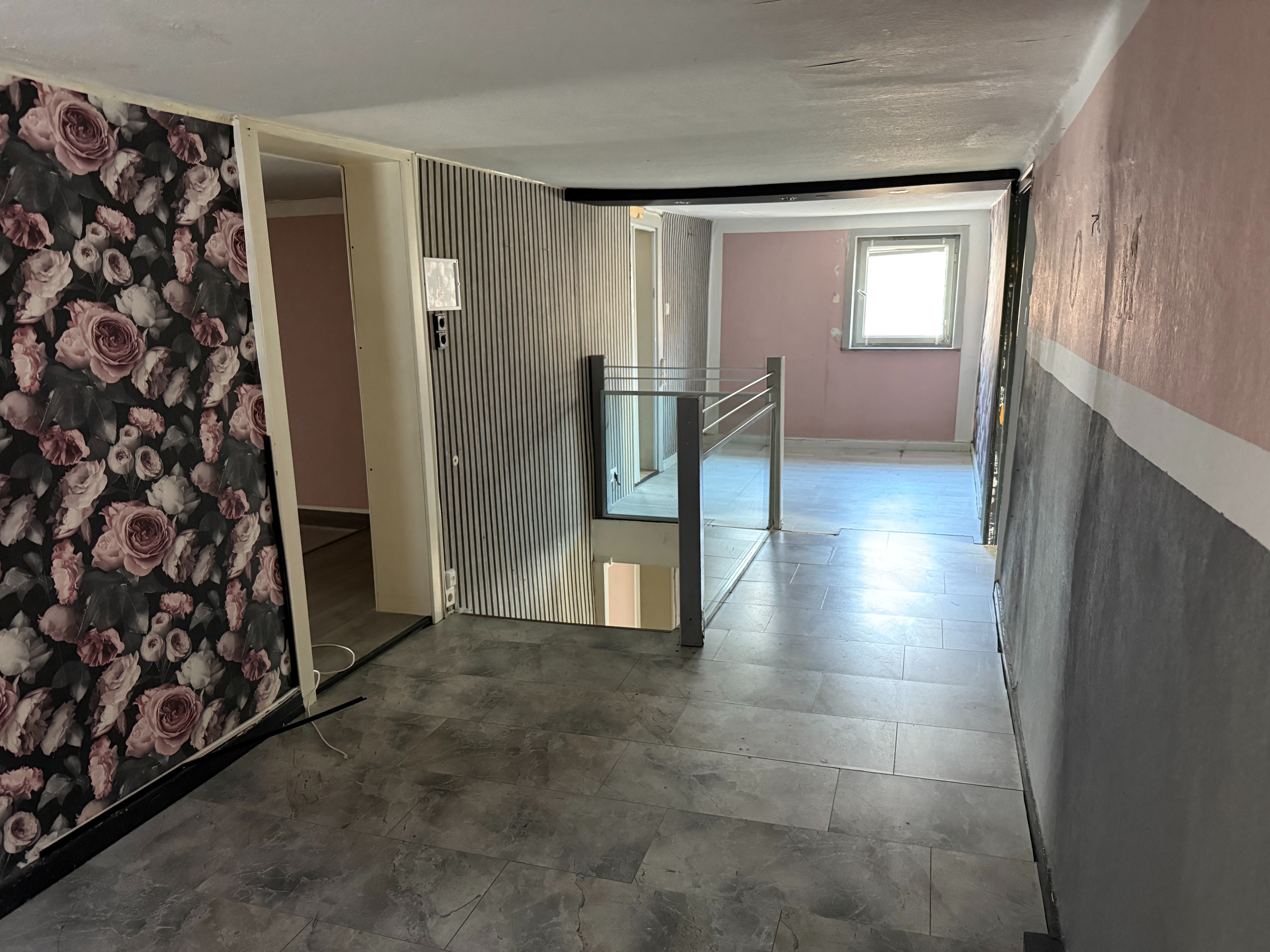 Im Erdgeschoss befinden sich ein Wohnzimmer, eine Küche, ein Badezimmer, ein Schlafzimmer sowie ein Abstellraum. Das Obergeschoss bietet ein weiteres Wohnzimmer, eine Küche, ein Badezimmer, ein Schlafzimmer, ein Kinderzimmer, einen Arbeitsraum und einen Abstellraum. Zu beachten ist, dass die Deckenhöhe im Dachgeschoss recht niedrig ist.