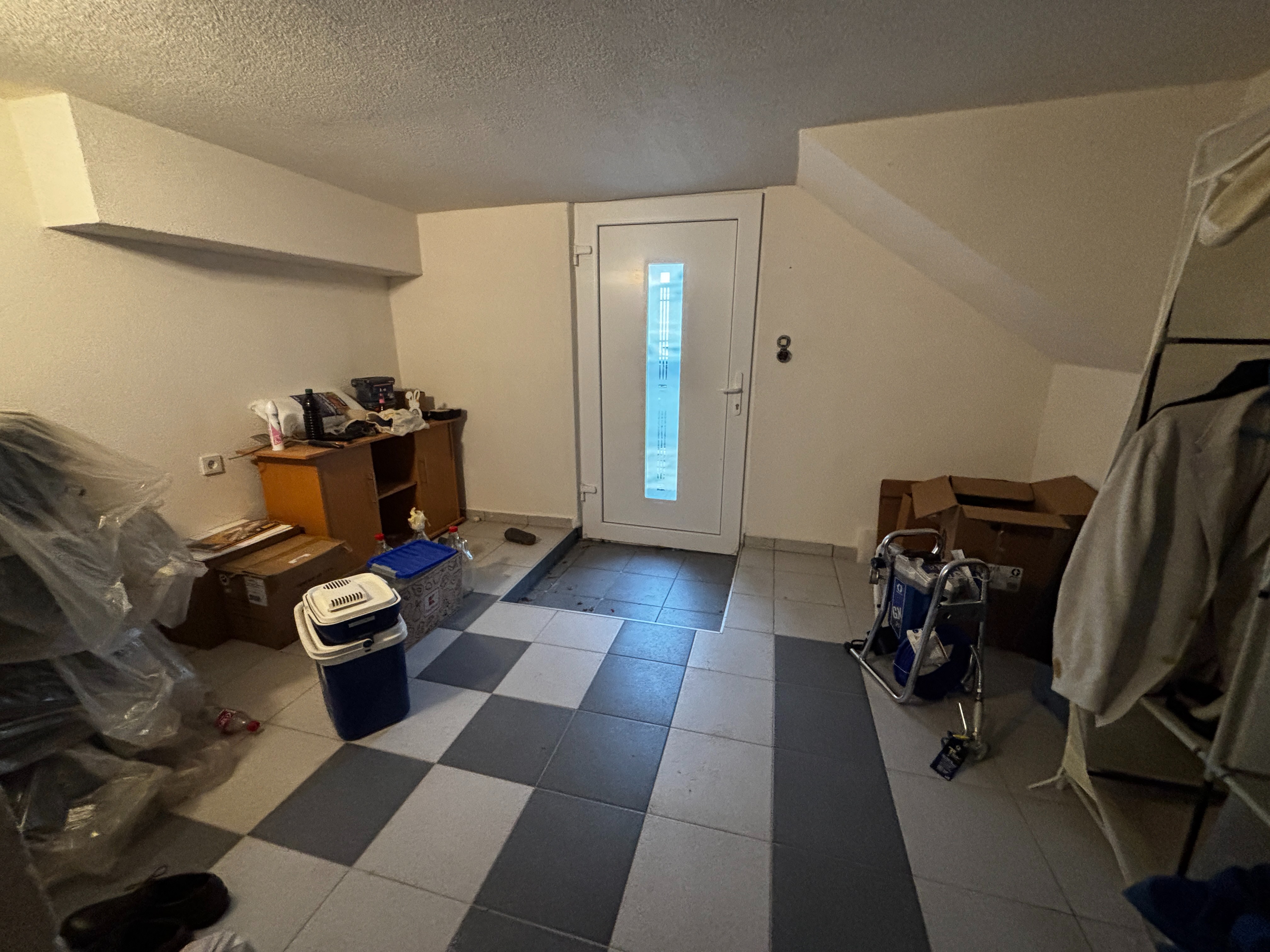 Im Untergeschoss liegen der Eingangsbereich, ein Hauswirtschaftsraum mit einem Warmwasserspeicher (ca. 600 Liter) sowie ein sanierungsbedürftiges Badezimmer.